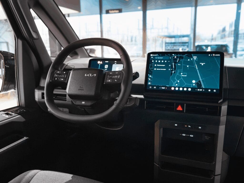Wat de PV5 direct bijzonder maakt, is zijn veelzijdige karakter. Kia ontwikkelde hem niet als een ‘gewone’ bestelbus, maar als een voertuig dat zich aanpast aan vrijwel elke sector. Of je nu pakketten vervoert, gereedschap, goederen of mensen, de PV5 kan het. De modulaire carrosserie maakt hem geschikt voor uiteenlopende toepassingen en daardoor voelt hij als een echte partner voor ondernemers. Bij de eerste kennismaking valt het meteen op hoe stil hij is. De elektrische aandrijving werkt verfijnd en krachtig tegelijk. Je merkt direct dat je met een bedrijfswagen van de nieuwste generatie te maken hebt: modern dashboard, slimme rijhulpsystemen en een afwerkingsniveau dat je eerder in een personenauto verwacht dan in een bestelwagen.